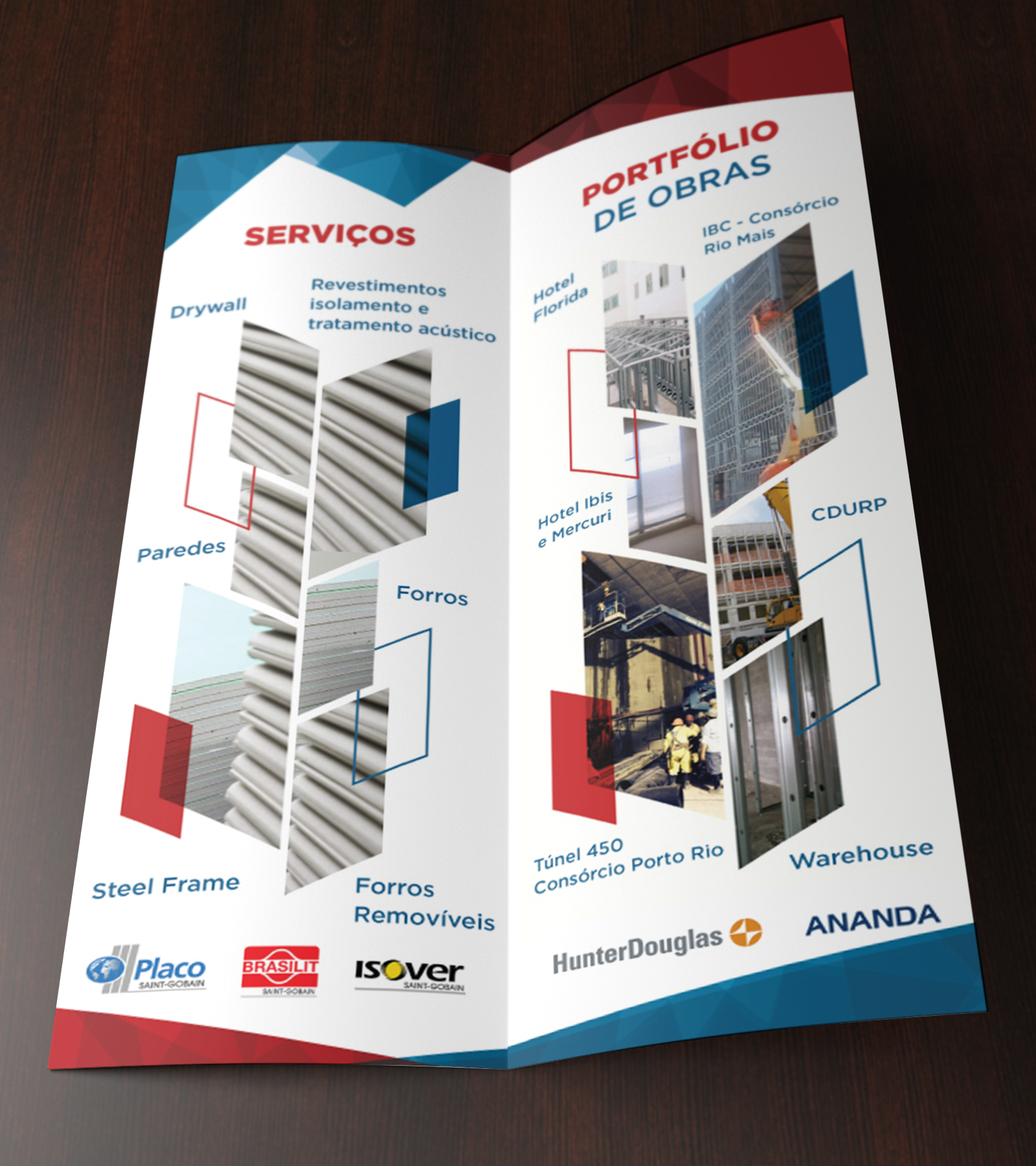 Folder e mockup da logo em fachada da loja.