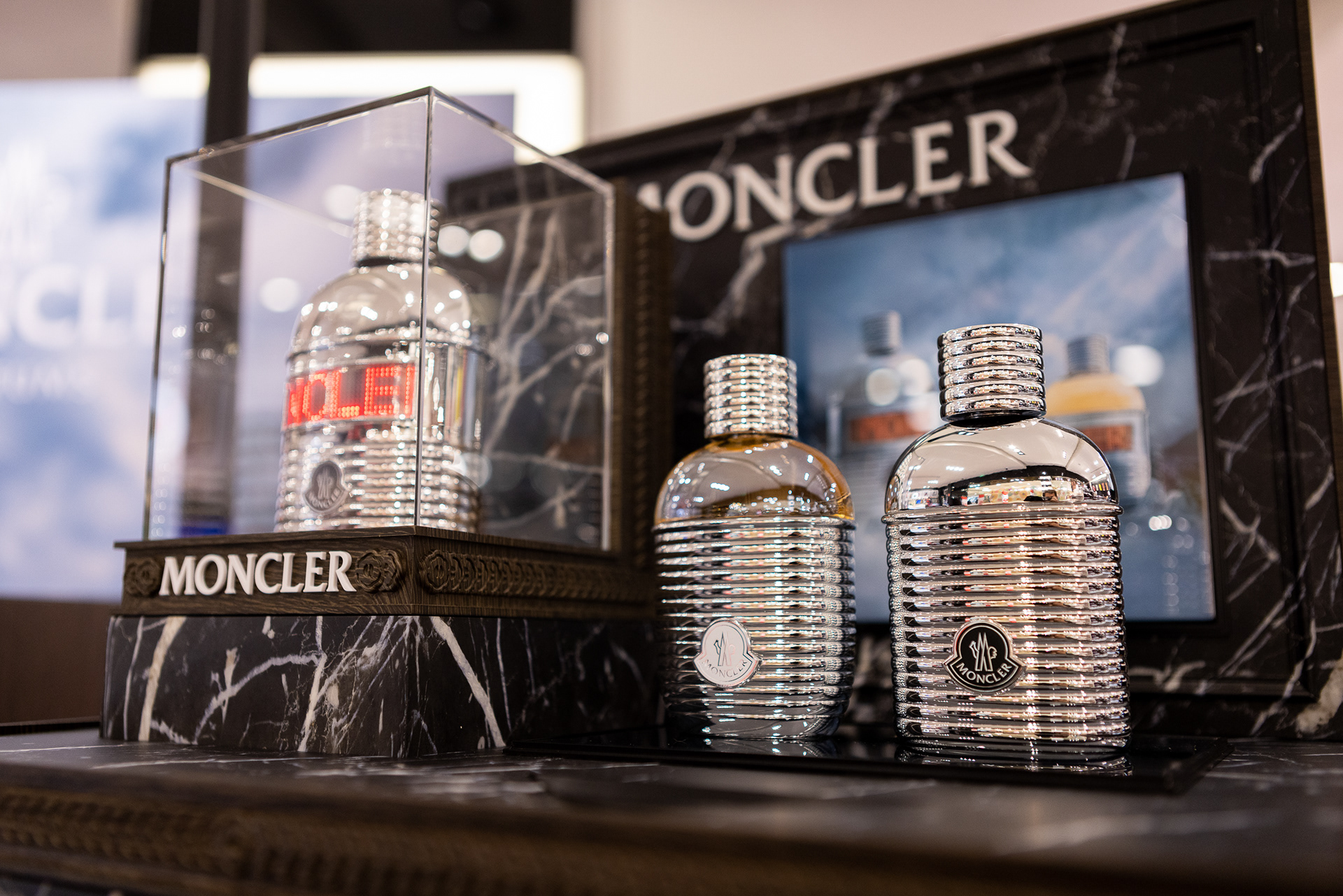 Cobertura fotográfica para a Vizcaya Cosméticos de lançamento da nova fragrância da Moncler, no Shopping Morumbi, em São Paulo.